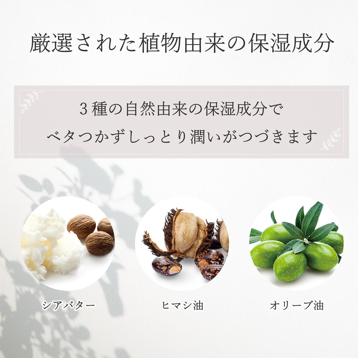 シアバター(シア脂)、オリーブオイル(オリーブ果実油)